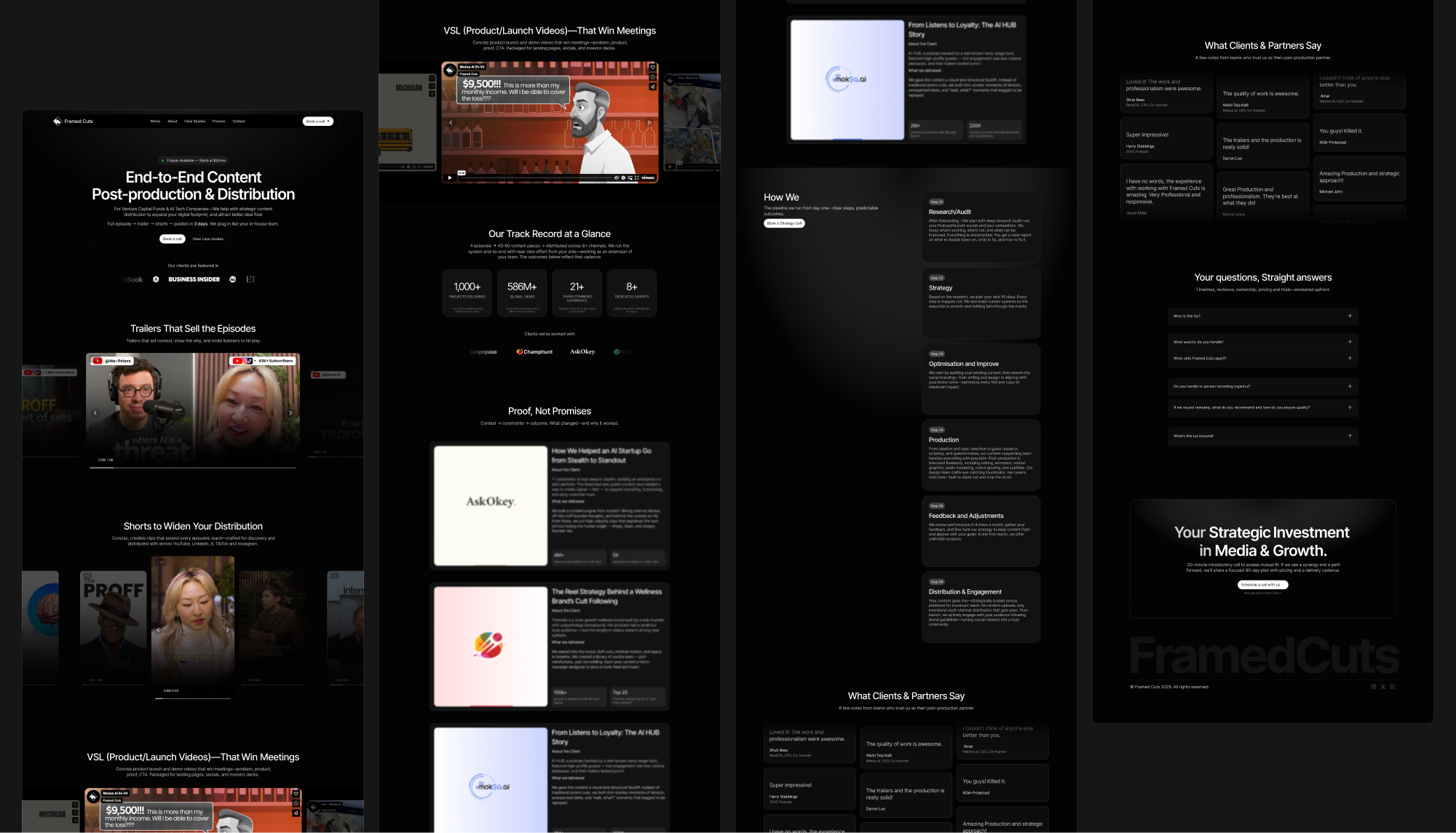 By designing and building a premium landing page that aligned with Framed Cuts’ branding, I helped them better position themselves to attract their key clients: AI tech companies, VCs, and podcasters who need top-tier post-production support for their products and content.