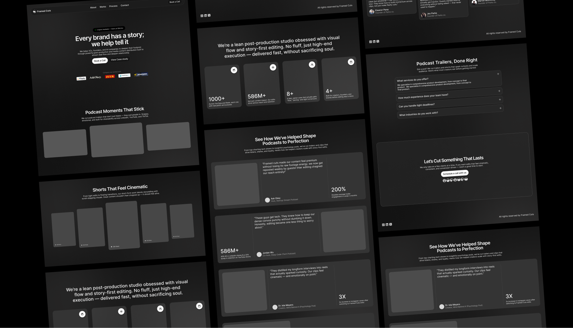 Framed Cuts had built a strong reputation working with AI startups, VCs, and tech podcasts, but they lacked a website to showcase their expertise. Relying only on referrals and outreach limited their growth and ability to land high-value projects.